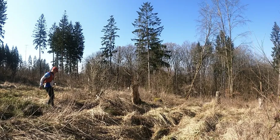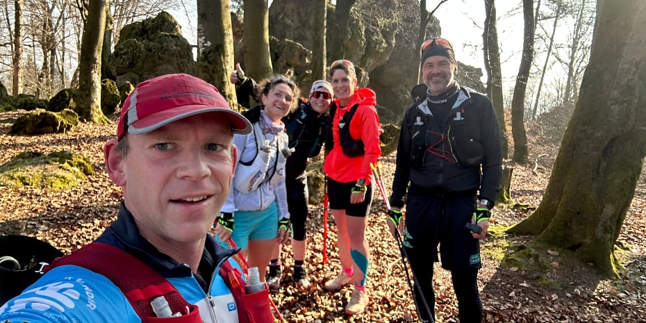 Nun ja, groĂźartig die Pace vorantreiben ist hier gerade eh nicht angesagt. Entweder stolpern wir quer durchs Totholz oder konzentrieren uns mehr auf eine durchaus ablenkende Kommunikation. Das Wort fĂĽr KĂĽchentratsch auf dem Trail muss noch gefunden werden, merke ich gerade.