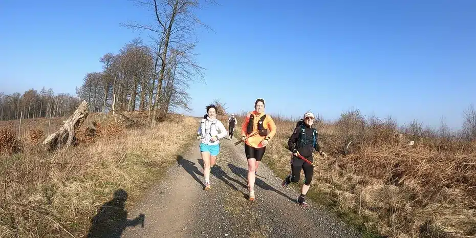 So langsam meldet sich das kleine HĂĽngerchen. Das geht scheinbar nicht nur mir so. Auf dem Weg bergab zum ersten Verpflegungspunkt legen wir daher ein kleines Schippchen zu.