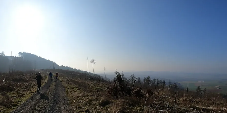 Ein paar „meeeeegaaaa“ Kalauer („Nur einer von uns kann Germany’s Next Trailrunner werden“) begleiten uns ĂĽber den Kindelberg. Ich will mich nicht zu frĂĽh freuen, aber irgendwie habe ich das GefĂĽhl, dass das Ding heute gut ausgehen wird.
