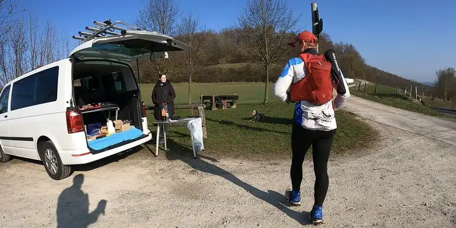 Der Race Director trifft als Erster von uns am VP ein. Nicht, weil er am meisten Hunger hat – nein, sein prĂĽfendes Auge braucht ungehinderten Blick auf das Arrangement. Ist die Vita-Cola (yeah!) an Ort und Stelle? Hängt der MĂĽllsack parat? Ich finde, das passt alles perfekt und sage noch mal ganz herzlichen Dank. ❤️