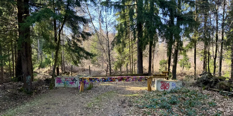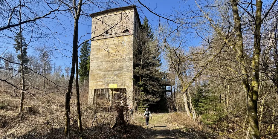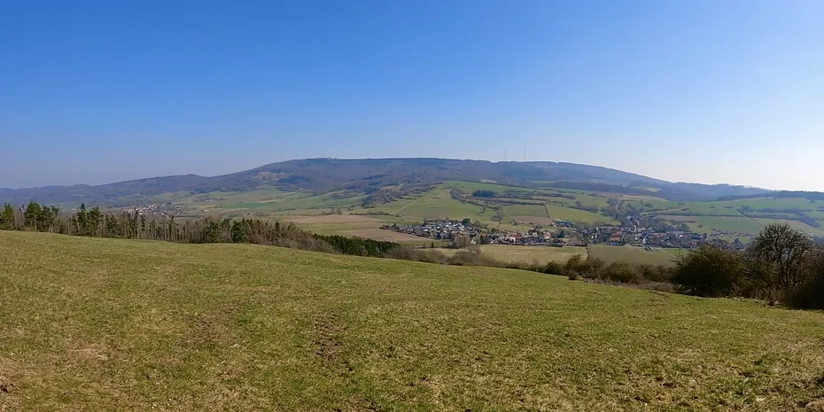 Hier looken wir erstmal for one of the highest hills of this run. 583 m hat der Eisberg. Nur ein wenig tiefer liegt der der dekorative Grenzstein von Hessisch Lichtenau.