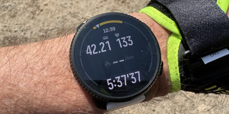 Die SUUNTO kann das besser. „Hey, Martin. Nur noch 42,03 Kilometer bis ins Ziel. Nicht mehr weit. Das schaffst du locker“, steht da jetzt in der Kurzfassung. Also nur die Kilometer. Das aber auch nur, weil der Platz auf dem Display nicht reicht.