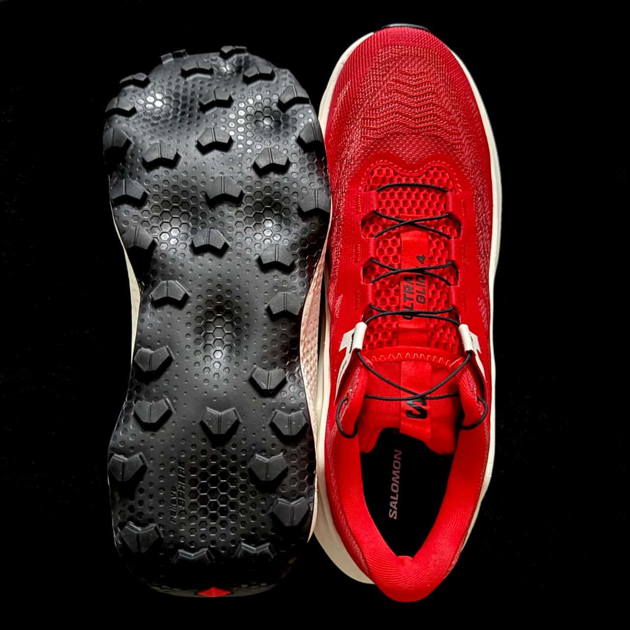 Fernab jeglichen Merkmalen gefällt mir auf Anhieb schon einmal das Colourway, in welchem der neue Salomon Ultra Glide 4 bei mir eingetrudelt ist. Mit dem Rot bin ich in Sachen Salomon beinahe aufgewachsen. Ja, ich liebe es regelrecht – das klassische Design des S/LAB Sense. Hier punktet der neue Ultra Glide schon mal ganz klar gegenüber der grauen Maus, die hier letztes im Test war.